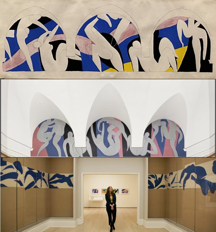 MODERN STYLE—Top: “Dance: Study for the Barnes Mural (Second Version)” on loan from the Metropolitan Museum of Art to ”Matisse in the 1930’s,” a special exhibit currently at The Philadelphia Art Museum. Middle: “The Dance” by Matisse, at The Barnes Foundation. Bottom: “The Swimming Pool” by Matisse, at the Museum of Modern Art.